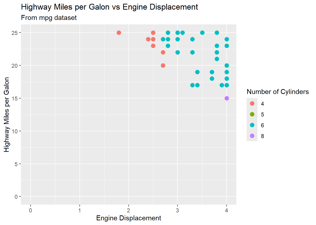 mpg$cyl <- as.factor(mpg$cyl)Creating a ggplot Object